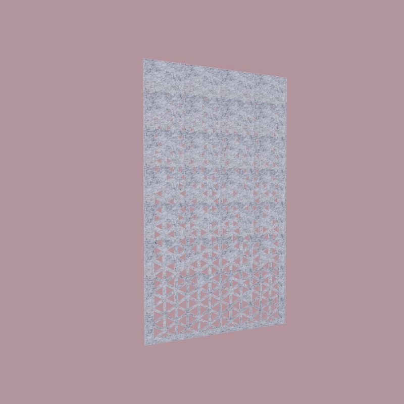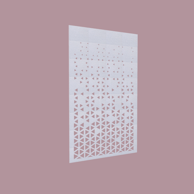 Triangle-shaped perforations, designed with computational-aided design, gracefully adorn this sound-absorbing screen. Use it to section off smaller areas within larger spaces, while enhancing both visual and acoustic privacy.