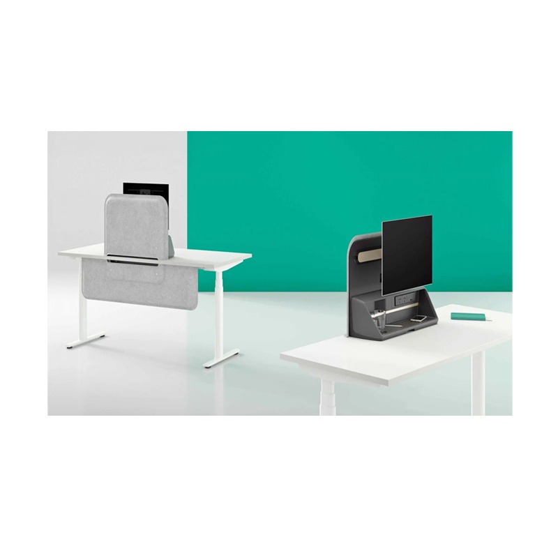 Introducing Screenliner, a unique acoustic desk screen which creates a personal cabin space within the workstation. With features including integrated storage for phones, glasses, headsets and other personal effects, Screenliner provides built-in power and inductive charging facilities as well as concealed power management and ambient lighting.
