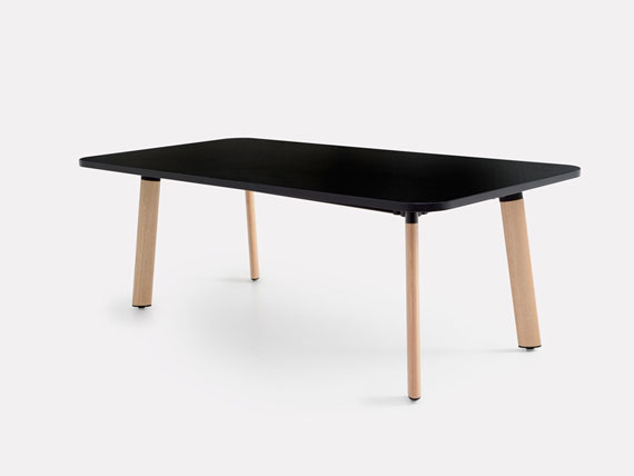 Talki is the sit down table on glides for collaborative work and conversation. The Talki is part of the Talki collection available in two other variations: Walki is a high table to stand around, and Wheeli is on castors.